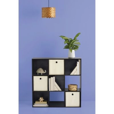 Give your traditional bookshelf a modern update with the 9 Cube Organizer Shelf from Room Essentialsâ„¢. The shelf has a particleboard frame and has 9 cubes that give you sufficient storage space to keep books and decor items. The cubes are big enough to hold fabric storage bins too. You can use the top surface to keep plants or a key tray. The storage shelves have enclosed and open cubbies that you can fill in a variety of different ways, add the colored fabric boxes and now there is a colorful decorative touch.