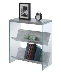 Get in the orbit of the SoHo Bookcase that is perfect for any modern space. With a generous faux birch finish top surface, you will have plenty of space to store your decor or pictures. The tempered glass sides catches the eye and makes this bookcase a sparkling addition in any room. This decorative yet practical piece has a convenient stylish two lower shelves for plenty of added display and storage. Will provide years of enjoyment.