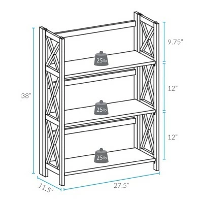 3 Shelf X Design Folding Bookcase – Flora Home Black