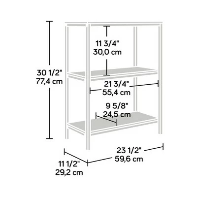 Stylish storage wherever you need it! Create versatile storage and display options throughout any room in your home with the simplistic design and modern appeal of this bookcase from the North Avenue collection. This attractive bookshelf features three large shelves that provide you with all the space you need for storage of a variety of different items like magazine stacks, your favorite books, organizing bins and much more. It also makes a great spot to display home dΓ©cor items like sweet smelling potpourri, a vase of flowers and your array of knick-knacks. You can find a place for all your things! It’s finished on all sides for versatile placement throughout any room in your home β the living room, down the hallway, your office or even in the bedroom. Finished in Smoked Oak and paired with a durable, black metal frame, this good-looking bookcase is just what you’ve been looking for.