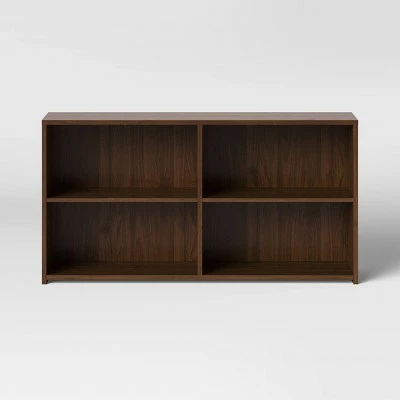 Bring organization to your space and display your books, mementos and pictures in style with this Brannandale Horizontal Bookcase from Project 62™. Crafted of laminated-finish wood, this horizontal bookshelf features a clean-lined silhouette in a walnut finish that blends effortlessly with any decor style. The four open, adjustable shelves make it an ideal pick to keep your treasured books organized and accessible — from artwork to your favorite novels to picture albums and more — in any area of your home.