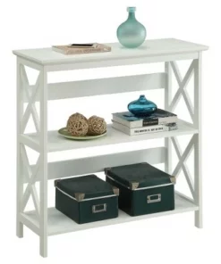 Give your home a handsome makeover with the Oxford 3 Tier Bookcase. Featuring 3 spacious shelves where you can display books and collectibles. The X pattern creates a modern appeal with clean lines. Crafted with style and functionality in mind the Oxford 3 Tier bookcase will become a staple in your home. Also available in multiple finishes this piece will easily complement any home decor. Look for other items from the Oxford Collection for the complete look sold separately.