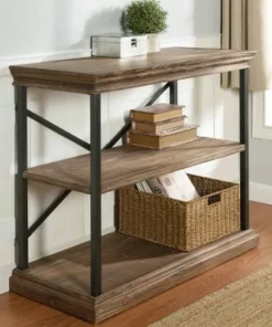 This Archer Ridge bookcase is the perfect blend of traditional and modern design. Its coated steel bar frame supports three driftwood gray wooden shelves, the topmost of which features crown edges for a touch of classic elegance. Complete with a medium brown stain finish, this simple yet on-trend design will lend understated, elegant style to any room. Place it wherever you need extra storage, like the bedroom or foyer. Whether your style is rustic, industrial, or sophisticated, this bookcase will make the perfect addition to your space. This piece exemplifies superior product design and great styling. It will pair well with traditional styling.