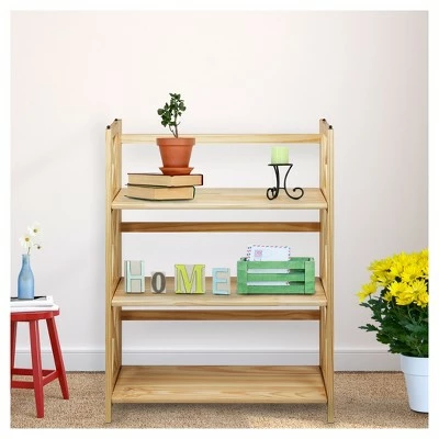 Sturdy and stackable, the X-Design 3-Shelf Folding Bookcase is ideal for any storage. 3 shelves to maximize storage and decorative displays. Stackable design allows your storage and home design to grow when you need them to. Effortless foldable engineering means you can transport or store with ease. Constructed from solid wood for lasting beauty. No assembly required. Product dim (expended): 27.5″W x 11.5″D x 38″H. Folded dim: 27.5″W x 2.5″D x 38″H.