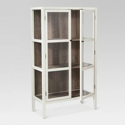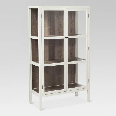 The Vista Library Cabinet with Glass from Thresholdβ’ combines the elegance of glass with a rustic wood look. This cabinet is the perfect furniture for displaying precious antiques and collectibles on any of its three fixed shelves. Its sleek and simple design blends easily with any decor from traditional to mid-century modern to contemporary. with easy instructions this cabinet is a breeze to put together. This sturdy cabinet comes complete with anti-tip hardware to ensure you and your family are safe.