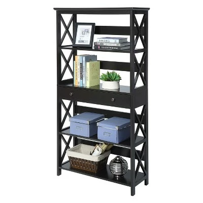 59.75" Oxford 5 Tier Bookcase with Drawer Black – Breighton Home