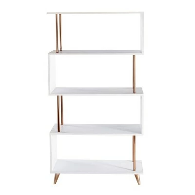 60.5" Bucklon Assymetrical Etagere White/Champagne – Aiden Lane