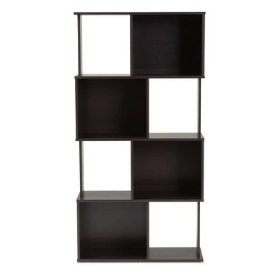 Display your book collection on the visually striking Riva bookshelf. Constructed from wood, the Riva displays an elegant dark brown finish that complements any color palette. This modern, abstract piece features four enclosed shelves aligned in a zig-zag pattern, providing a unique space to display your favorite books. Four open shelves provide additional display space. The Riva bookshelf is made in Malaysia and requires assembly.