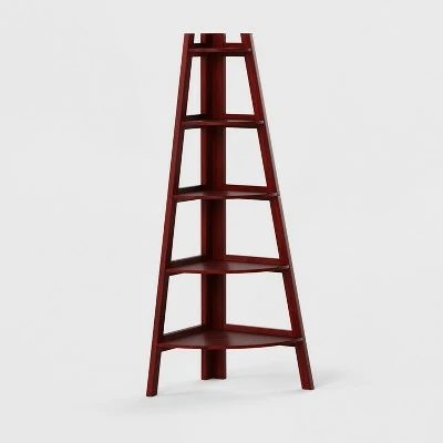 For any room that needs extra flair and storage, get this Lynch Five-Shelf Corner Bookcase from HOMES: Inside + Out. Featuring a triangular design, wooden construction and a solid color, this corner bookcase helps you save space while adding a unique and modern appeal to your decor. The open shelves provide enough space to store or show off your decorative pieces, books or other items. Easy to fit in the corner of any room, this open-shelf bookcase will look great with your existing decor.