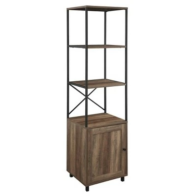 64″ Paterson Industrial Farmhouse Storage Shelf with Cabinet – Saracina Home Rustic Oak