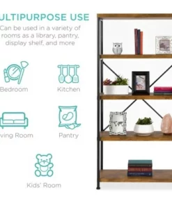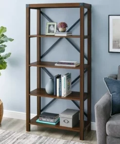 67″ Flip Flop Square Folding Bookcase with Wicker Storage Baskets – Regency Oak/natural