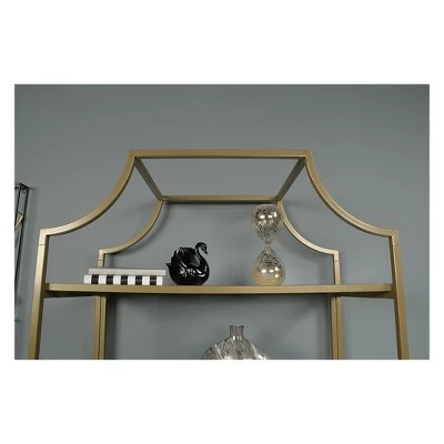 Give your space a sophisticated update with this bookcase from the International Lux collection. It features open shelving with safety-tempered glass so you can store and display books, plants, dΓ©cor and more. Constructed from metal and finished in Satin Gold, this elegant bookcase will have any room in your home feeling luxurious and chic.