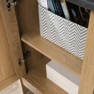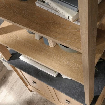 Stylish storage where you need it. Beautify your home décor when you add the charming good looks and versatile design of this bookcase with doors from the August Hill collection. This tall bookcase features three open shelves that provide you with the room you need to conveniently store items like work binders, your favorite novels, and organizing bins. These large shelves also make a great spot to display home décor items like your collection of knick-knacks, decorative plants, and framed photos of your family and friends. Behind the double doors is a hidden storage area that includes an adjustable shelf that can move to different heights to create flexible storage for items of all shapes and sizes. It has room for all your things! Finished in Dover Oak® with Slate accents and detailed with attractive hardware, this stunning bookcase with doors will give your home the style you want with the functionality that you need.