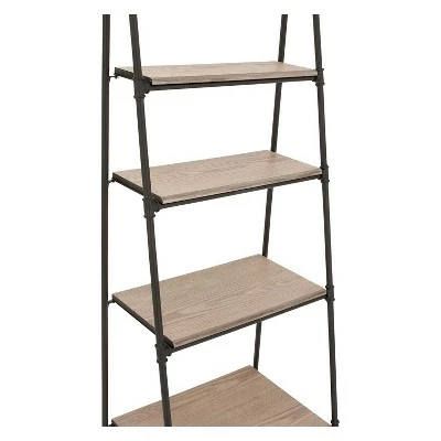 This industrial 5-tier ladder shelf provides you a perfect storage solution and offers a clean and comfortable living space. Filled with shoes, books, blankets and more, these shelving units are a stylish way to store your stuff. Utilize your wall space to additional storage any where in your home. This item comes shipped in one carton. Suitable for indoor use only. An accent furniture with 5 shelves in varying sizes. Industrial theme. Maximum weight limit for shelf is 30 lbs.
