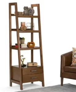 72″x24″ Hawkins Solid Wood Ladder Shelf with Storage – Wyndenhall Distressed Gray