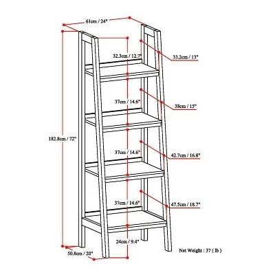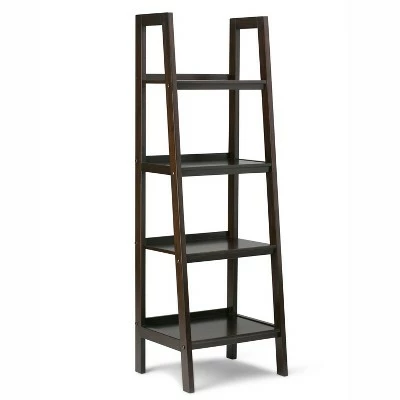 72″x24″ Hawkins Solid Wood Ladder Shelf with Storage – Wyndenhall Medium Saddle Brown