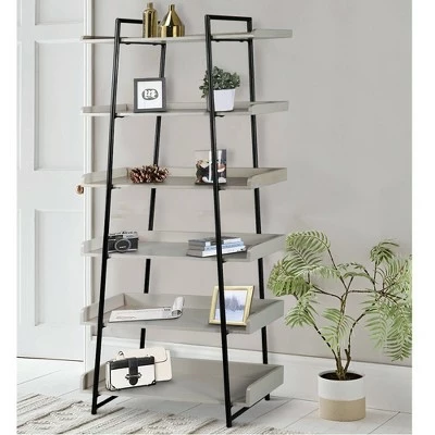 A perfect blend of farmhouse style and industrial style, this Ladder Bookshelf which comes with 6 tier storage space will serve as a sophisticated abode for all your books and exotic decor items. This bookcase is constructed sturdily from the combination of acacia wood and metal frame, it is accented with gray and striking black color finish. Incorporated with aesthetically visible grain details which add an enchanting vibe to it, this coveted piece of furniture can intermingle with any decor setting and the mere presence of it will enhance the overall aesthetics of your place.