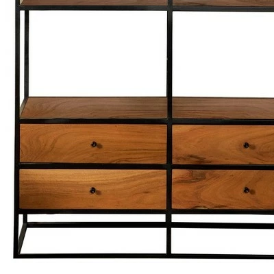 74" Metal Etagere with 4 Drawers and 4 Shelves Brown/Black – Benzara