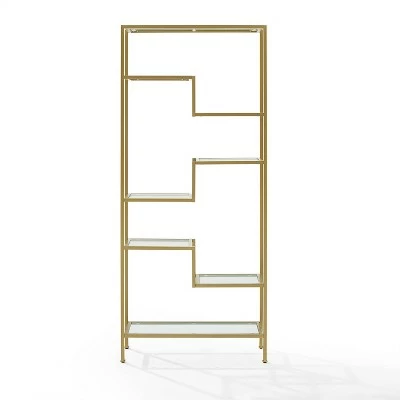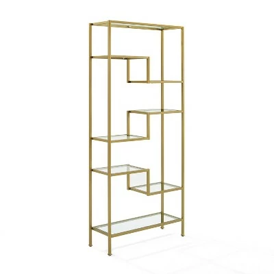 Modern beauty and functional simplicity are the hallmarks of the Sloane Etagere. Ready to display precious keepsakes or your favorite books, this etagere’s sculptural steel frame features sturdy tempered glass shelves. Variable shelf heights create a geometric design with Art Deco flair, making the Sloane Etagere an ideal bookcase or display space.