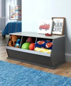 Badger Basket’s Three Bin Stackable Storage Cubby/Bin is a sturdy, modular storage solution for keeping all sorts of items tidy in any room. Features three, large, open compartments and it can be stacked with other bins to expand your storage capacity (each unit sold separately). Use for storing books, papers, media, dolls, toys, sporting goods, games, craft supplies, linens, and more! Wide mouth openings make it easy to load and unload. When you need to clean up quickly, it is a breeze to stuff everything inside! Great for kids when learning to sort and organize. Top surface offers an additional place to keep collections and trophies. Easy to clean, solid panel, smooth surface construction. Made of engineered wood with melamine lamination. Badger Basket’s Three-Bin units can mix and match with Badger’s Two-Bin and Shelf Storage units. Overall unit measures approximately 37.25 inches L x 19.25 inches W x 17.25 inches H. Each bin measures 11 inches L x 17.25 inches W x 15.75 inches H. Height from floor to top edge of front panel is 9.25 inches. Assembled weight: 33.5 pounds. All measurements approximate. Wipe clean and dry thoroughly. Adult assembly required. When stacking multiple bins, you must always use the included safety brackets to secure the units together. If stacking three or more bins high, we recommend using wall anchor/furniture safety straps (not included) to anchor the units to the wall for safety. Wall anchor straps are not included due to the many types of walls found in homes. Please consult with your local hardware retailer. Product may vary slightly from shown. Props/accessories shown are for illustration purposes only. Product complies with all currently applicable safety standards. Actual color/finish may vary from screen display. This item ships in its original carton that may include a product photo. Soft plastic/rubber toys (such as balls) can react with the finish when left in prolonged contact. Be mindful of what is stored in the unit.