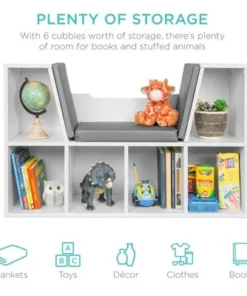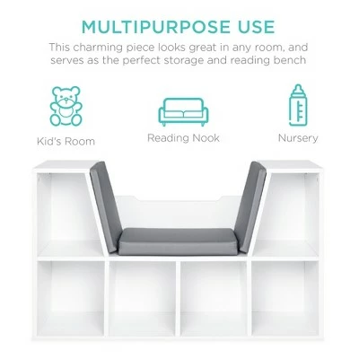 Best Choice Products 6-Cubby Kids Bedroom Storage Organizer, Multi-Purpose Bookcase w/ Cushioned Reading Nook