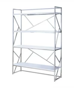 Bettallo Modern Wood 4 Shelf Bookcase in Chrome and White – Furniture of America