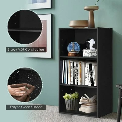 Costway 2 PCS 3 Tier Open Shelf Bookcase Multi-functional Storage Display Cabinet Black