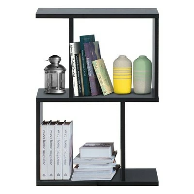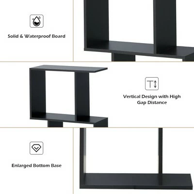 Costway 2-tier S-Shaped Bookcase Free Standing Storage Rack Wooden Display Decor Black