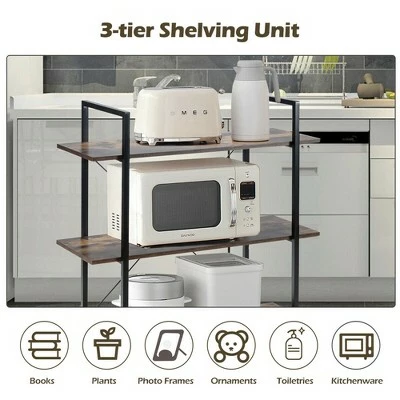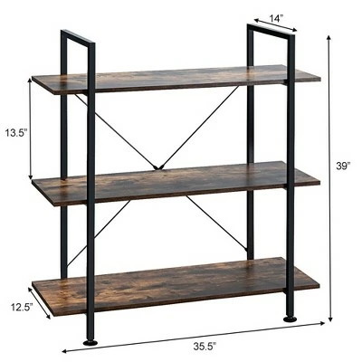 Costway 3-Tier Bookshelf Industrial Bookcase Display Shelf Storage Rack Rustic Brown