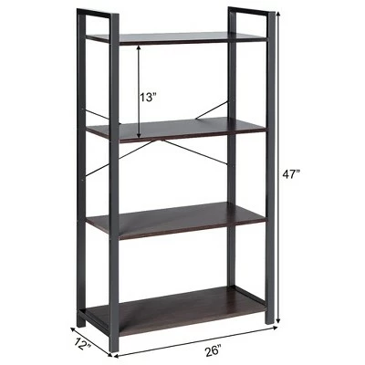 Costway 4-Tier Bookshelf Industrial Bookcase Diaplay Shelf Storage Rack Rustic BrownBlack