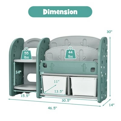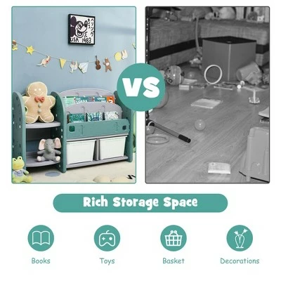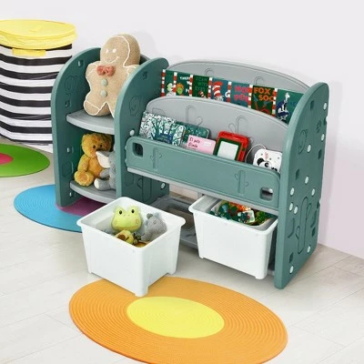 Costway Kids Toy Storage Organizer w/ 2-Tier Bookshelf & Plastic Bins