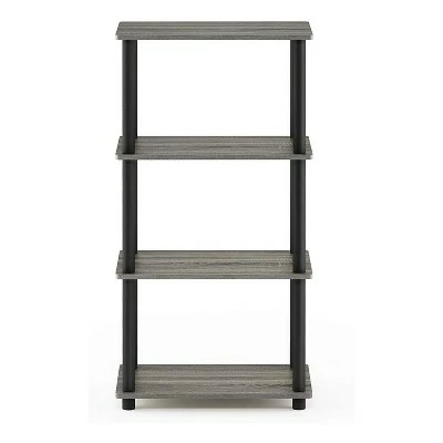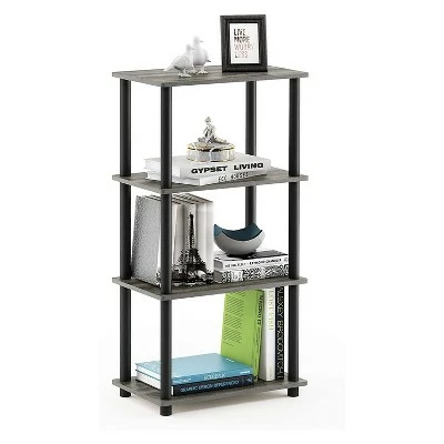 Furinno Turn-N-Tube 4 Tier Wooden PVC Corner Display Shelf and Bookcase for Living Room, Dining Room, Bedroom, and Office Spaces, French Oak Grey