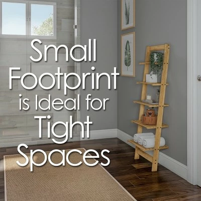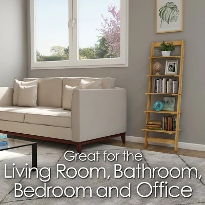 Hastings Home 5-Tier Bookshelf – 50″ Tall, Pickled Oak Wood Finish