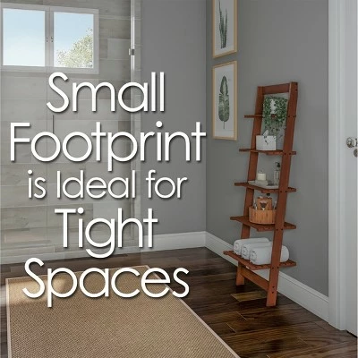 Hastings Home 5-Tier Wooden Ladder-Style Bookcase – Walnut Finish