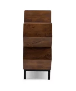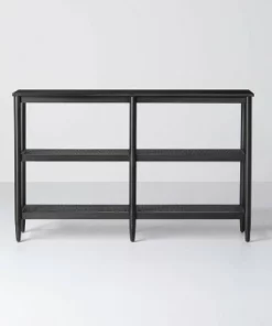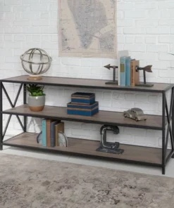 Organize and decorate your home in style with this Lipped Three-Shelf Wood Console from Hearth & Handâ„¢ with Magnolia. Made with wood in a brown finish, this rectangular console table is designed with extended sides for a modern look that suits your aesthetics. It comes with three open shelves and a slightly raised back to help you display books, decorative items and more while providing easy access to them. Place this brown console table in your living room and hang wall art above the table for a decorative look in your space.