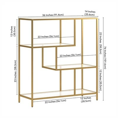 Henn& Hart 40″ Tall Brass Finish Bookcase – Henn&Hart