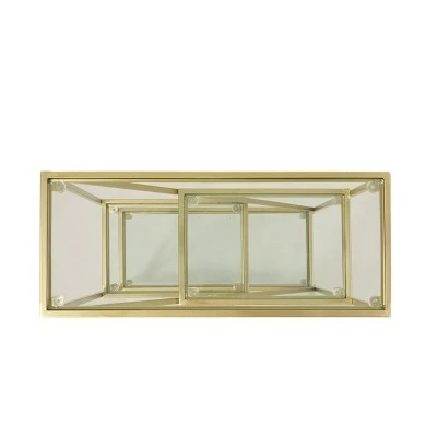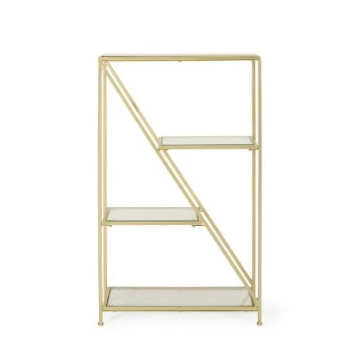 Bring an upscale atmosphere to your home by accessorizing an empty corner or unused wall with our dazzling bookcase. Showcasing a luxurious modern glam design, this bookcase features an asymmetrical shelf structure for an eye-catching look. This etagere piece offers three alternating shelves, creating an eye-catching aesthetic that will open up any interior space with unique style. Finished with clean tempered glass shelves and a gold frame, this piece not only provides organizational space but also complements your existing furniture, allowing you to easily personalize your home.