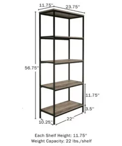 This 5-tier bookcase creates the perfect platform for displaying books, knick-knacks, photo frames, or another home dΓ©cor. This freestanding shelf organizer is made in Vietnam of rustic-looking manufactured wood with a gray woodgrain finish and a black steel frame that is sure to turn empty wall space into a focal point that is both attractive and purposeful for years to come.
