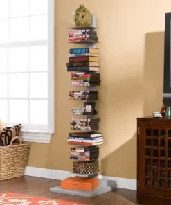 Meiyi Furniture SEI Furniture MS0895 55 Inch Freestanding Adjustable 11 Tier Modern Metal Spine Tower Book Media Shelf Decor Organizer Storage Case, Silver