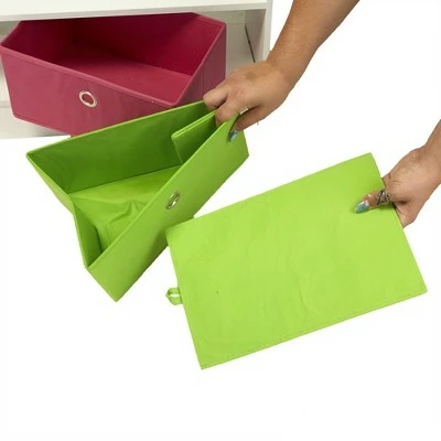 Bring home this vivid storage shelf from Mind Reader Products for organizing and stashing kids’ toys, books, and more.Make use of this unique Mind Reader shelving unit to add a bold splash of color to your organization solutions around the house, ideal for tidying up children’s toys, books, and other fun accessories. The brightly colored sling shelves and fabric boxes provide a great opportunity to teach your little ones about colors and create fun associations, like putting all the toy cars in the green box. Don’t settle for boring, ordinary black or steel shelving units in a room meant for lighthearted enjoyment–bring light and color into playtime instead.The three multicolor sling shelves ensure irregularly shaped objects and large books have a flexible storage system, and can be easily reached without a tipping hazard, unlike traditional flat shelves. Underneath, the fabric storage boxes can be used to store toys and other accessories, or can fold away flat so you can use the additional shelving for more books, etc. The durable wood construction supplies a sturdy support for toys and other accessories, while the bold fabrics make a fun addition in children’s bedrooms, dens, and other play spaces. Embrace the FUN in functionality with this bright and beautiful children’s storage shelf from Mind Reader Products.The dimensions are 9 L x 28 W x 29 H.