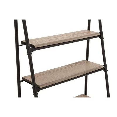 A decorative home storage item that works best with an industrial style-home. Filled with shoes, books, blankets and more, these shelving units are a stylish way to store your stuff. Utilize your wall space to additional storage any where in your home. This item comes shipped in one carton. Suitable for indoor use only. This beige and black ladder style shelf can support up to 100 lbs. An accent furniture with 4 shelves in varying sizes. Industrial theme