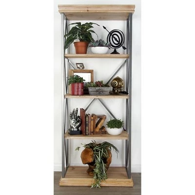 - Features a rectangular 5-tier shelving unit, and metal frame with x-shaped design