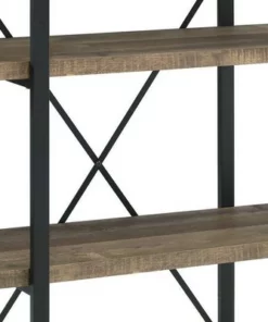 54.75" Bookcase with 4 Tier Storage and X Metal Band Brown/Black – Benzara