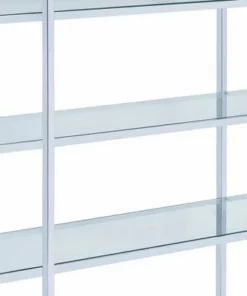 63" Bookcase with 5 Tempered Glass Shelves and Electroplated Frame Chrome – Benzara