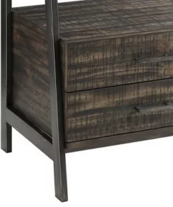 72" Bookcase with 2 Drawers and 4 Tier Storage Brown/Black – Benzara