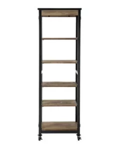 72" Wooden Bookshelf with 5 Cases and Casters Brown – Benzara