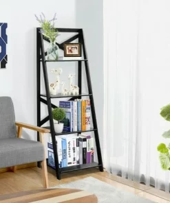 Costway 2 Pcs 4-Tier Ladder Shelf Bookshelf Bookcase Storage Display Leaning Home Office