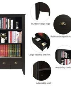 Costway 3 Shelf Bookcase Bookshelf Adjustable Shelves Antique Organizer Furni W/2 Drawer