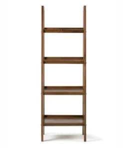 72″x24″ Hawkins Solid Wood Ladder Shelf with Storage – Wyndenhall Medium Saddle Brown