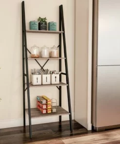 Hastings Home 5-Tier Ladder-Style Leaning Bookcase – Cherry Finish